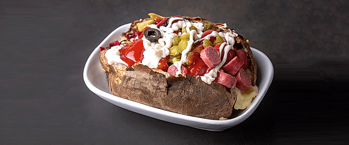 | Türk Soslu Tavuk Kumpir (Tereyağı, kaşar peyniri, jülyen tavuk fileto, arpacık soğan, sarımsak, mantar, kapya biberi, yeşilbiber, karabiber) | |