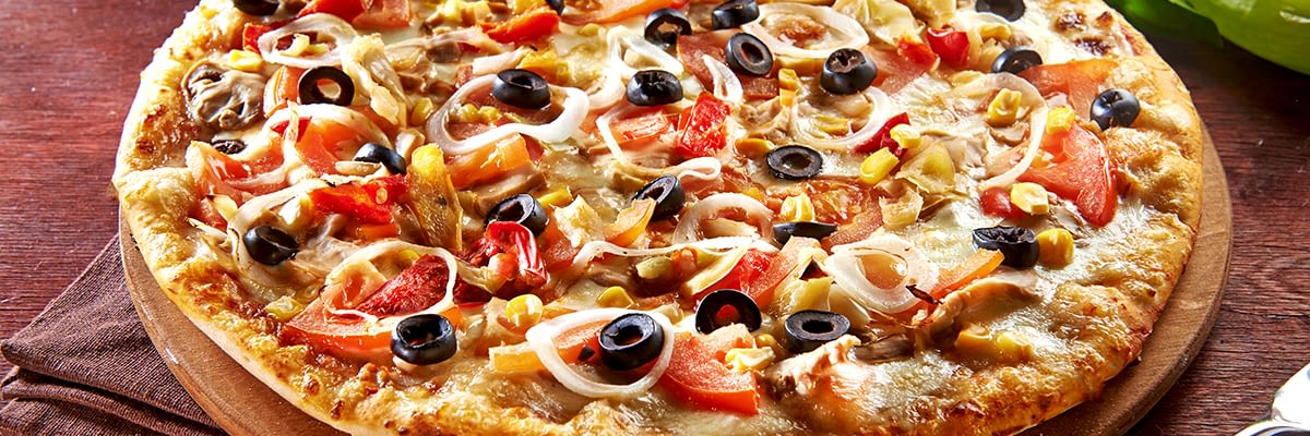 | Vegetarian Pizza (Pizza sosu, mozzarella peyniri, domates, yeşil biber, siyah zeytin, mısır, mantar) | ||||